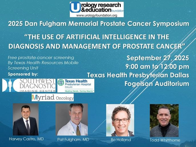 There will be a free prostate cancer screening (PSA test) at the symposium in Haggar Hall for men who have never been diagnosed with prostate cancer or for men who are 5 years post-treatment for prostate cancer. The screening will be offered by the Texas Health Resources mobile screening unit.